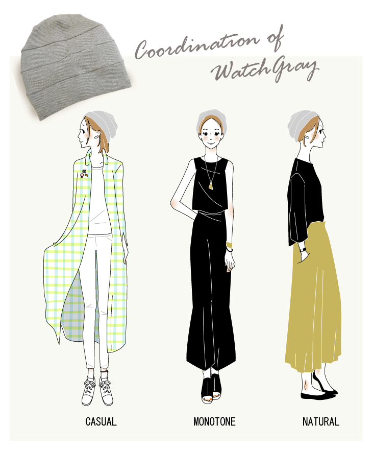 ワッチグレーを単独で使う場合も、程よいたるみがシルエットを作ってくれるから、被るだけでキマる!