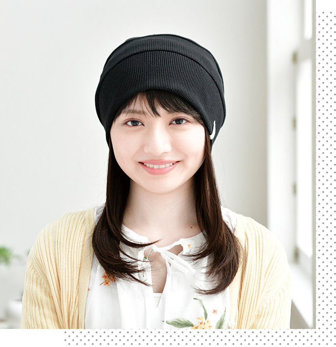 肌優といっしょに使うときは、前髪を活かして浅めに被るとかわいい!